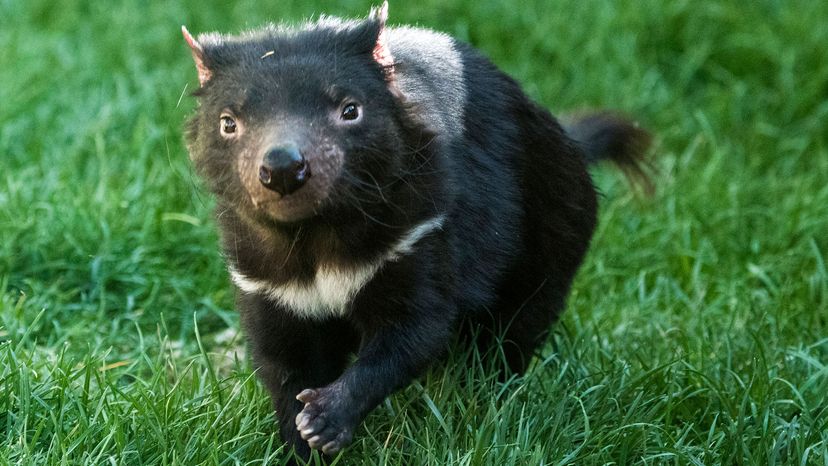 They are nocturnal, hunting for prey at night. It has a squat and thick build, with a large head and a tail which is about half its body length. While devils do not form packs, they are not entirely solitary and will share a range. So these creatures were trapped, poisoned and were driven out of many. The tasmanian devil's dark fur is typical of any marsupial.